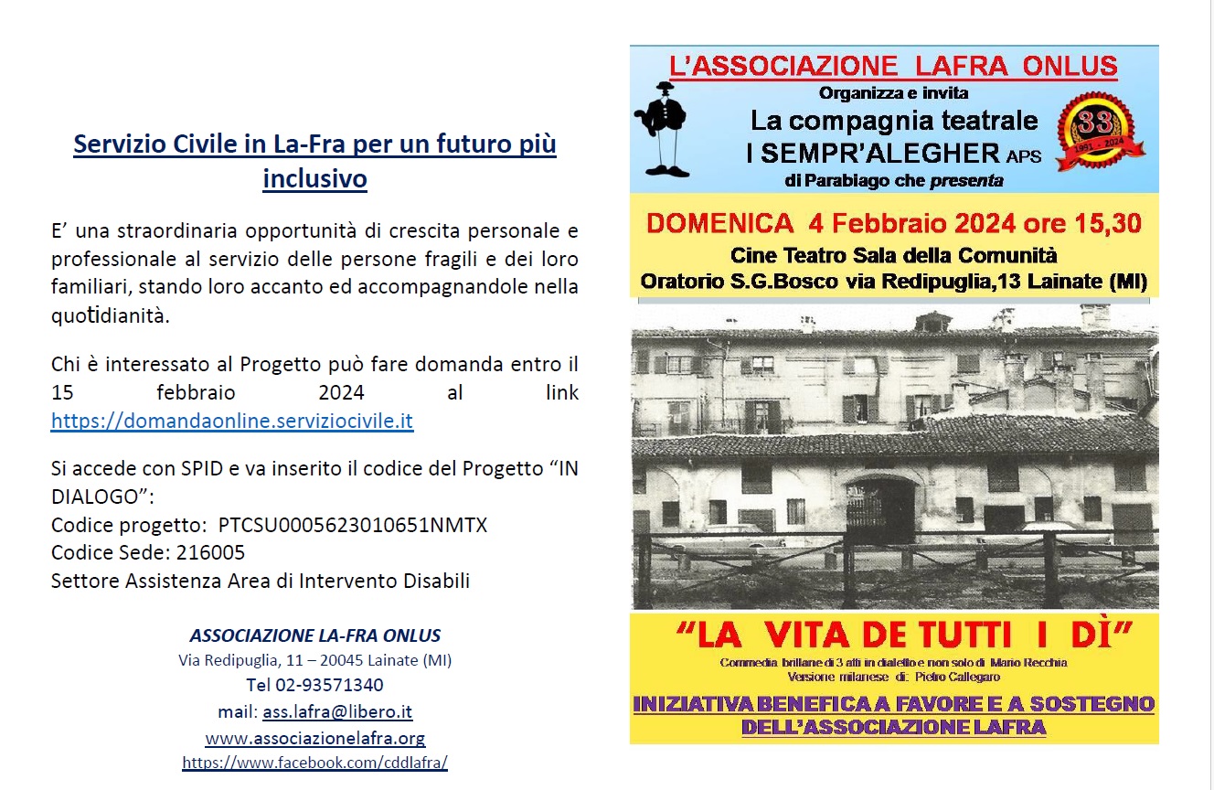 L'Associazione La-Fra ONLUS in collaborazione con il Comune di Lainate il giorno mercoledì 26 Settembre alle ore 21.00 presso la Sala delle Capriate - Comune di Lainate, presenta la Legge...